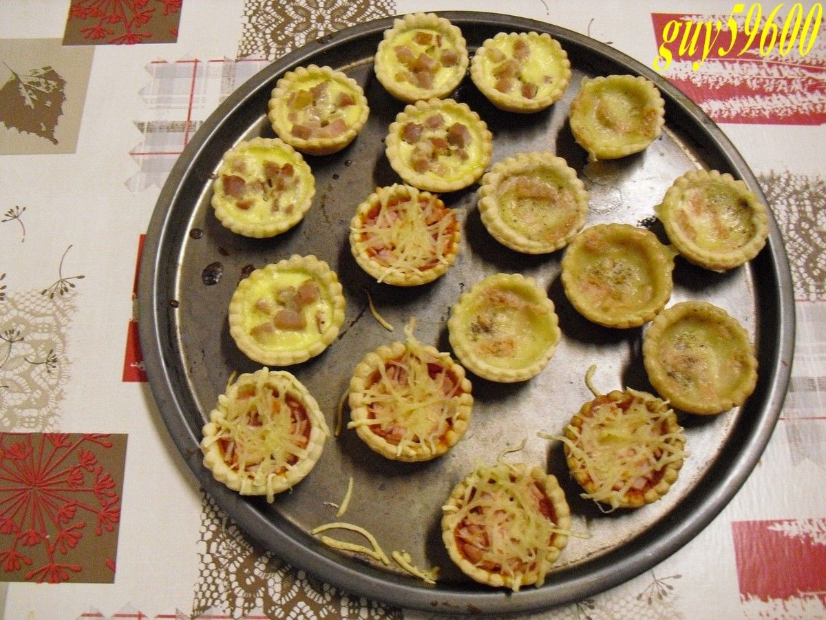 Beurrer des petits moules a tartelettes , reprendre la pâte l'étaler et découper des ronds au diamètre des moules , mettre ce ronds ans les moules , piquer un peu la pâte mettre des ronds de papier alu et déposer des haricots pour lester et faire cuire a blancs th 6 pendant environ 20 mn , arréter le four démouler les tartelettes , laisser refroidir , une fois froide dans plusieurs vous mettez des morceaux de maroilles , un peu de poivre , et un soupçon de crème fraiche , dans les autres mettez des morceaux de lardons verser un peu de mélange crème fraiche mélangé avec le lait , l'oeuf , le sel et le poivre , ajouer un peu de gruyèreet remettre au four pour une bonne dizaine de minutes jusqu'a ce que les ingrédients sois cuits , vous pouvez aussi faire des pizzas un peu de coulis de tomate dans le fond des tartelettes vous mettez des morceaux de jambons et du gruyère comme sur la photo ou il y a les tartelettes dans la platine , désolé oublié de les mettres sur une assiette et quand j'ai voulu reprendre la platine les petits enfants étais déjà passés :